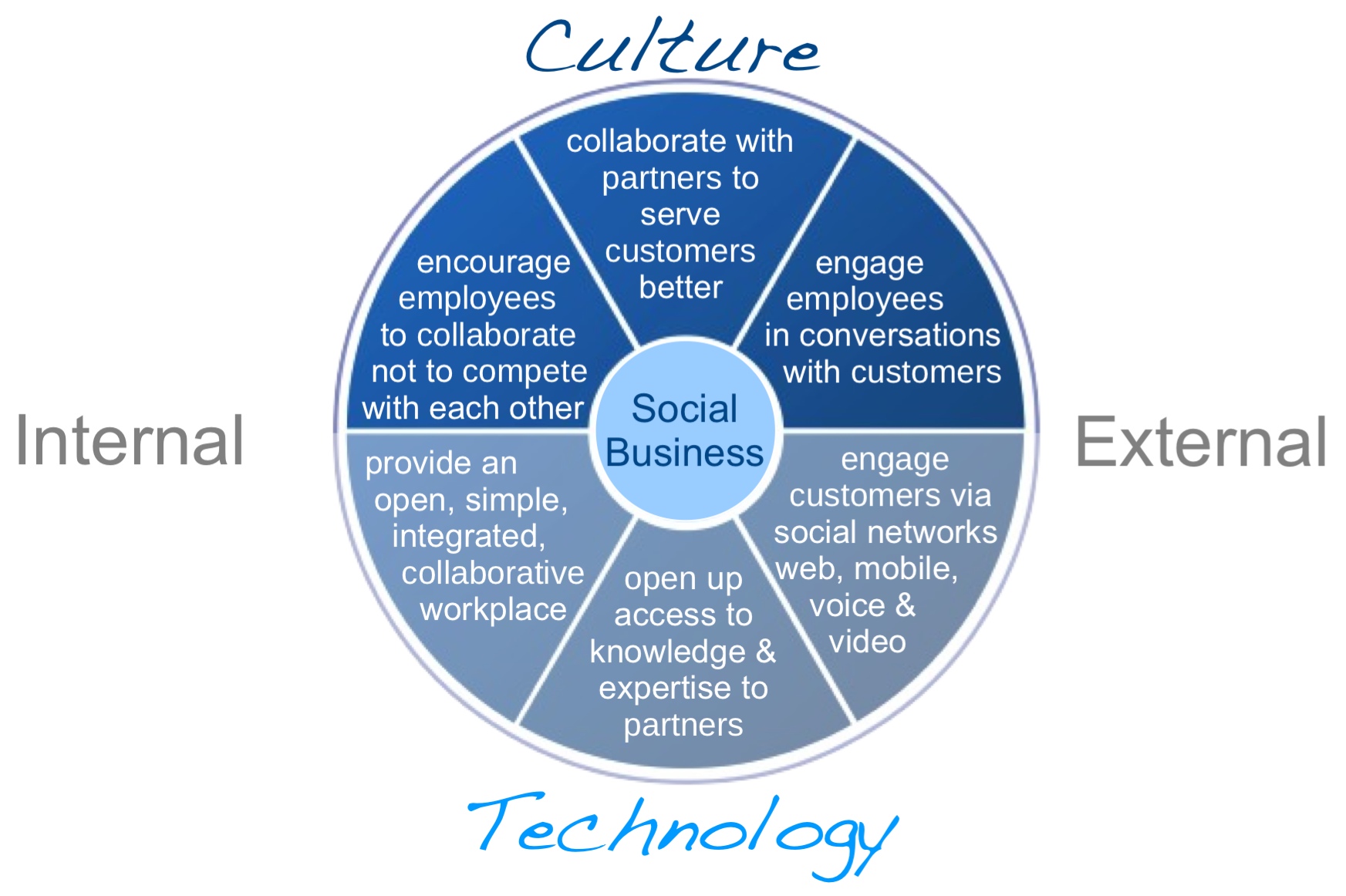 It makes the point that social business is primarily a cultural change, with significant organisational and operational implications, but one that can only be made if it is supported by the right technology. It’s a bit like the cultural shift from the Internet being something you used when sitting at a desk in front of a PC, to something use while walking down the street. It took the right package technology (initially the iPhone and App Store, then it’s smartphone siblings and their ecosystems) to enable that shift to “suddenly happen” – even though the 3G networks and devices with similar capabilities (for example Nokia’s Communicator range) had been around for a while without catalysing the change.