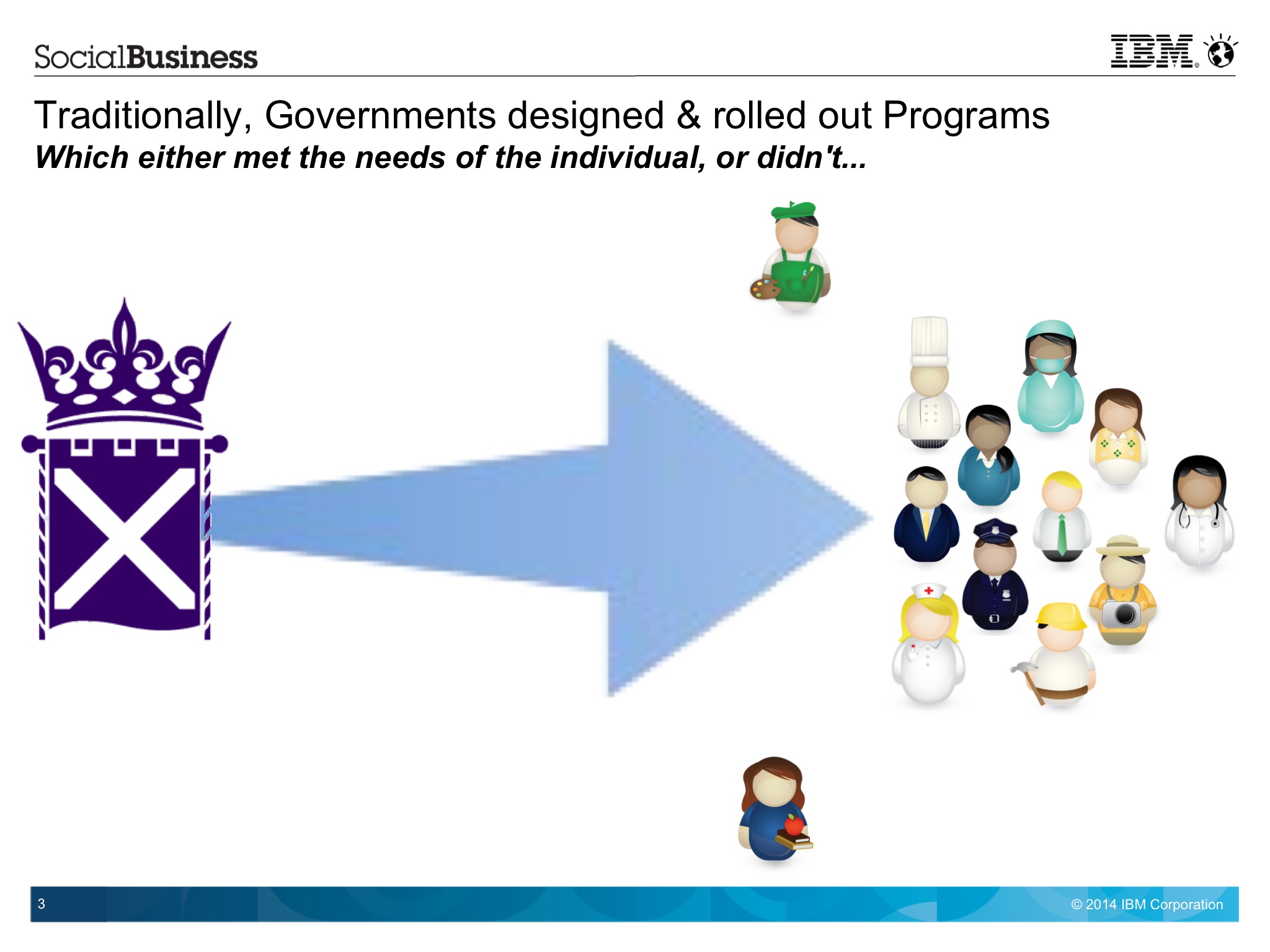 In my social business masterclass later in the day, I tried to visualise this concept. Pre-digital, government programs were “one size fits all”: